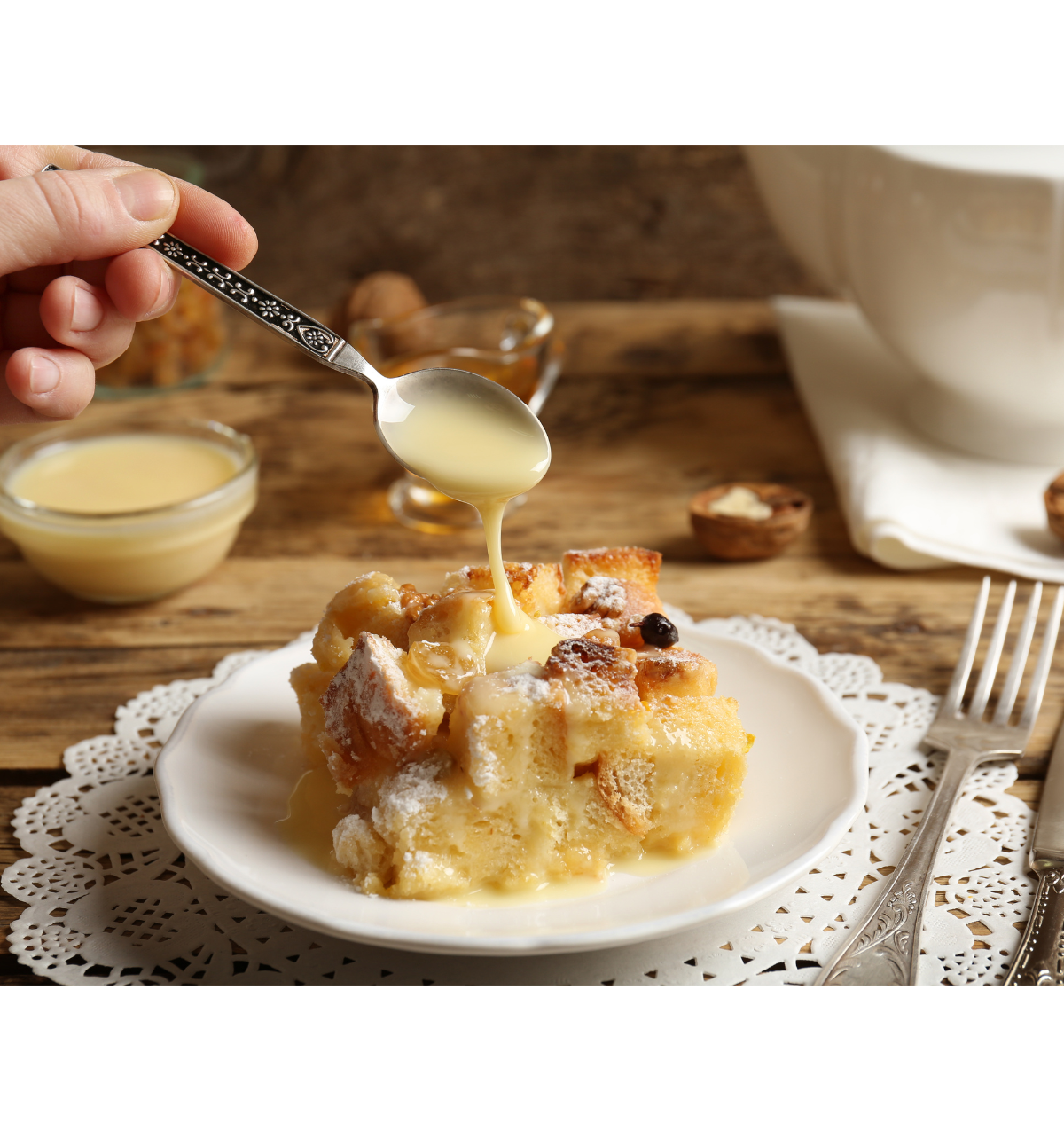 The custard base is what gives bread pudding its rich and creamy texture. To make this base, start by whisking together room-temperature eggs, milk, cream, sugar, and your choice of flavorings, such as vanilla extract or cinnamon. For an extra indulgent twist, consider adding a splash of amaretto, rum, or bourbon. The amount of sweetness can be adjusted according to your preference – if you prefer a less sweet taste, reduce the amount of sugar added.